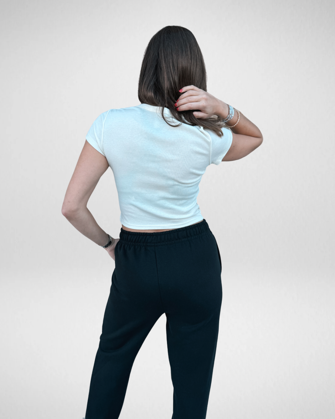 Say hello to your new favorite Baby Tee— the most perfect Baby Tee you have ever seen. This fitted crewneck is mid-length, so it’s ideal with our Joy Joggers, your favorite pair of jeans, or Fly Free Sweatpants. Comfortable is an understatement.