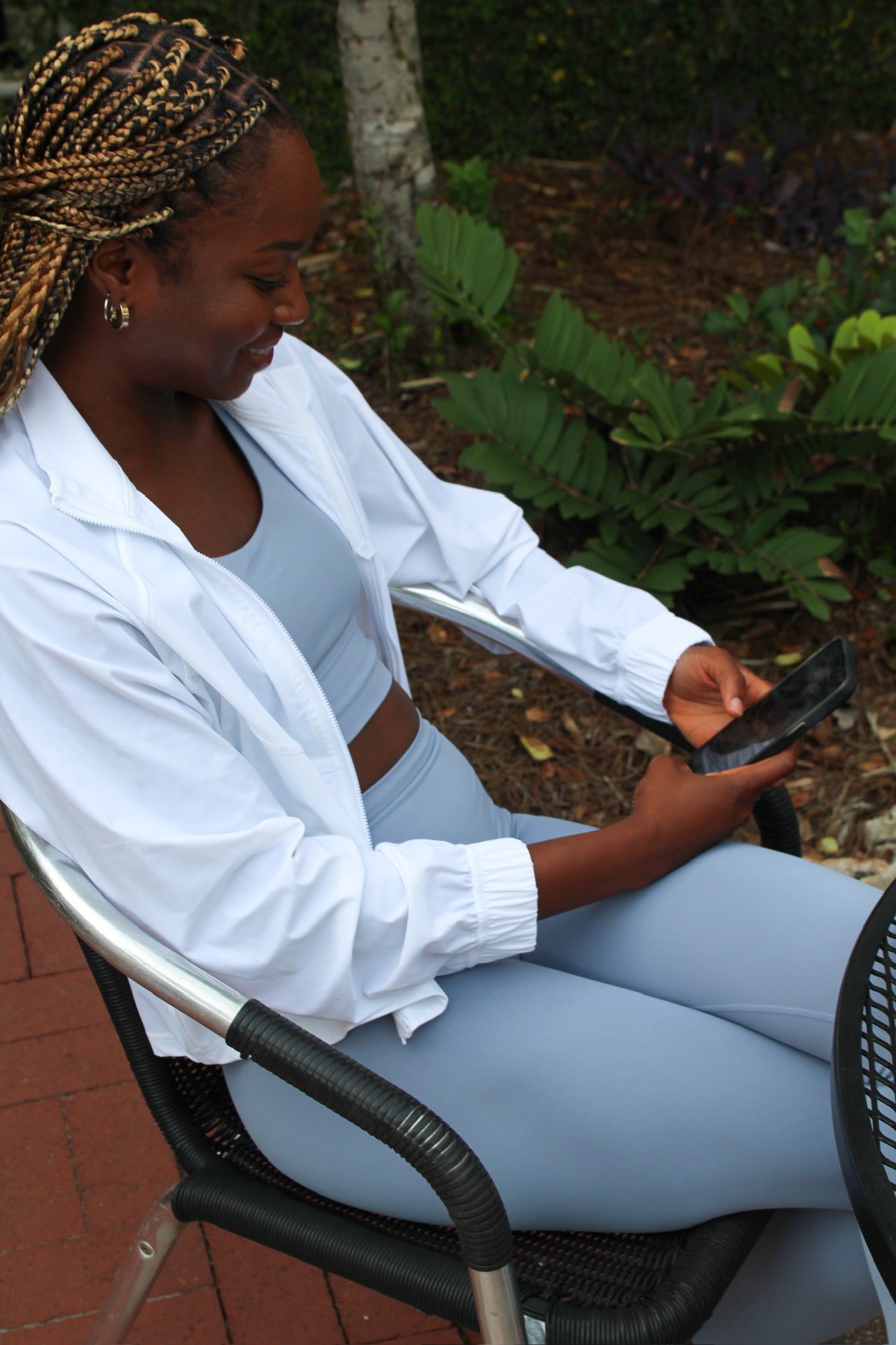 Meet your new go-to jacket from running errands to working out or a day at the ball game. You can put all your necessities in either pocket. Its moisture-wicking nylon and spandex help to keep the temperature down when you’re jumpstarting your day and constantly on the move.
