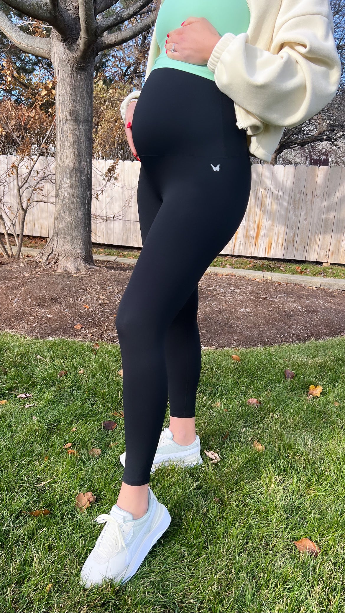 The Hot Mama Legging is perfect for everyday wear and all activities, with nearly a double waistband that is supportive of the bump, and will not fold down on you; you’re bound to feel comfortable and confident in this nylon and spandex breathable combo. Size up if you would like additional room during this transition.